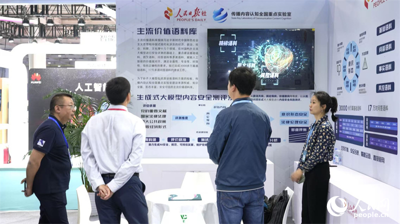 人民日報社傳播內容認知全國重點實驗室展區吸引眾多觀眾駐足了解。人民網記者 吳茜薇攝