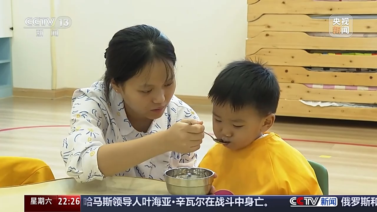 隨著晨檢的結束,孩子們便可以到食堂享用早餐。每周的食譜都會根據孩子生長發育的需求進行調整。除了入園體檢,以及由營養師制定的食譜外,永川區婦幼保健院托育中心與其他傳統托育中心不同的是,配有醫師、推拿師、營養師、治療師、評估師等8師共育服務團隊,同時還定期為孩子們進行生長監測以及發育評估、五官保健等活動。