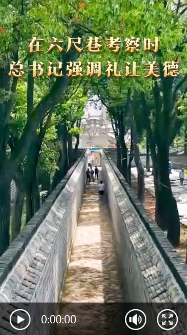 10月17日下午,習近平總書記來到安徽桐城市的六尺巷,重溫張吳禮讓典故,察看桐城歷史文化展陳。習近平說,來這里看一看,很有感觸。六尺巷承載著中國古人的歷史智慧,要弘揚好中華民族傳統美德,相互禮讓、以和為貴,解決好民生問題,化解好社會矛盾,使我們的社會更加和諧。