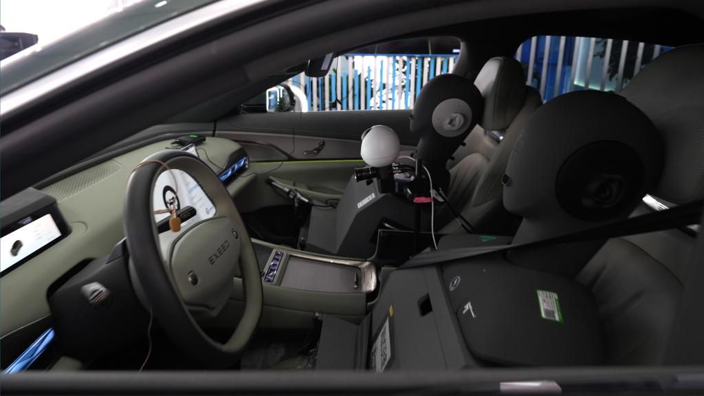 在第七屆世界聲博會(huì)上展出的智能座艙人機(jī)交互效果評(píng)測(cè)機(jī)器人。新華社發(fā)
