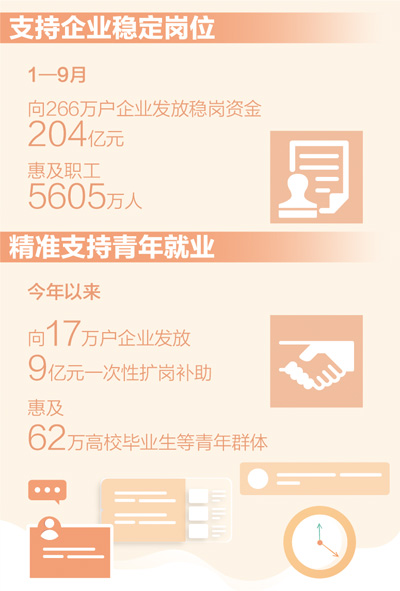 延續實施一攬子援企穩崗政策,前9月減收失業保險費1309億元