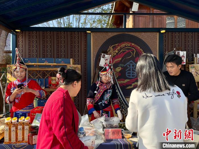 圖為黃予心(中)在江西吉安金坪民族鄉八寨集市售賣畬族特產。中新網記者劉子衿 攝