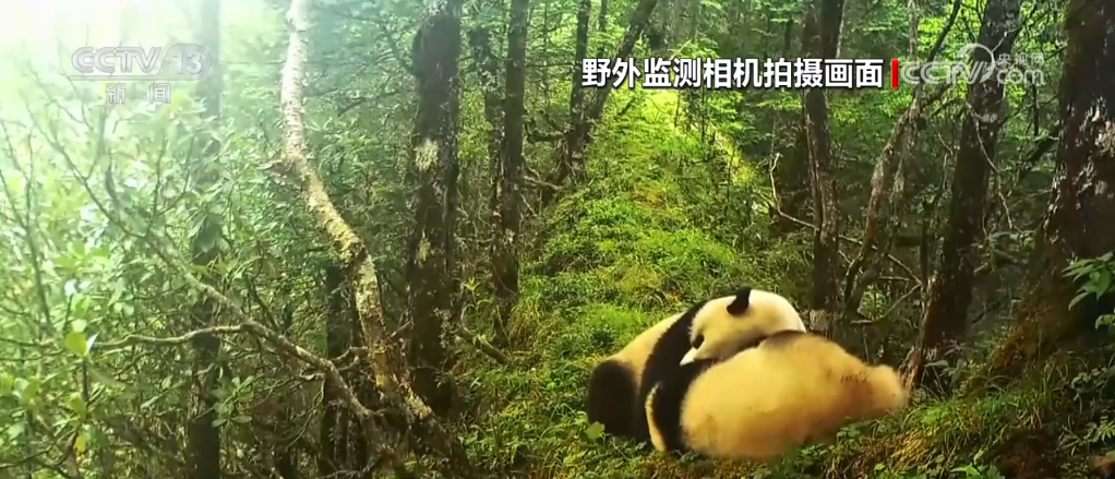 近日,四川阿壩州松潘縣林業和草原局的巡護人員在收集整理白羊自然保護區野外監測相機時,發現兩只野生大熊貓同框嬉戲的畫面。