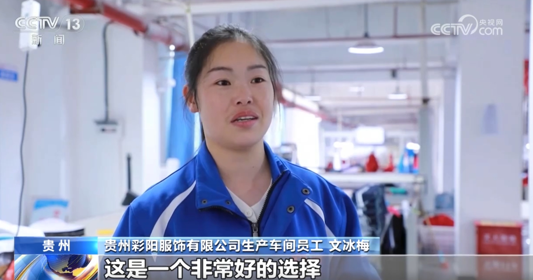 貴州彩陽服飾有限公司生產車間員工文冰梅稱:“平均工資四五千元,十幾年都在外面打工,回到家還有一份穩定的收入,對于我們長期在外面打工的人來說,這是一個非常好的選擇?!?/p>