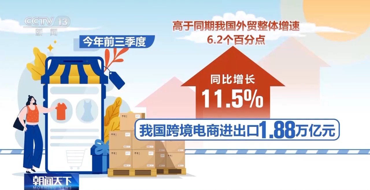 據海關總署最新發布的數據顯示,今年前三季度,我國跨境電商進出口1.88萬億元,同比增長11.5%,高于同期我國外貿整體增速6.2個百分點,正成為我國外貿增長新動能。