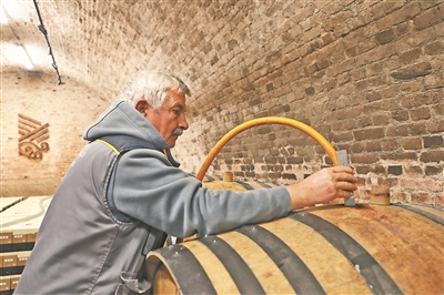在酒莊的地下酒窖內,一排排橡木桶有序排放,員工正在檢查環境溫度和濕度。酒莊首席釀酒師王俐介紹,弗魯什卡山產出的葡萄酒口感很接近中國消費者的喜好。酒莊特意選擇了梅洛等葡萄品種,并采用獨特加工工藝,使葡萄酒的風味更加柔和細膩。她拿出一款“奎特梅洛”紅葡萄酒介紹:“這是專門針對中國市場推出的產品,會在橡木桶中存放18個月。這款產品是酒莊在中國市場的暢銷款。”