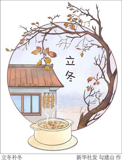 立冬時節,各地有豐富多彩的傳統習俗。比如,民間有祭祖、飲宴、卜歲等習俗,以時令佳品向祖靈祭祀,祈求來年是豐年;還有“補冬”,北方有“立冬補冬,補嘴空”的諺語,人們習慣在立冬這天吃餃子,因為餃子外形似耳朵,人們認為吃了它,冬天耳朵就不受凍。此外,還有釀黃酒、吃生蔥等。