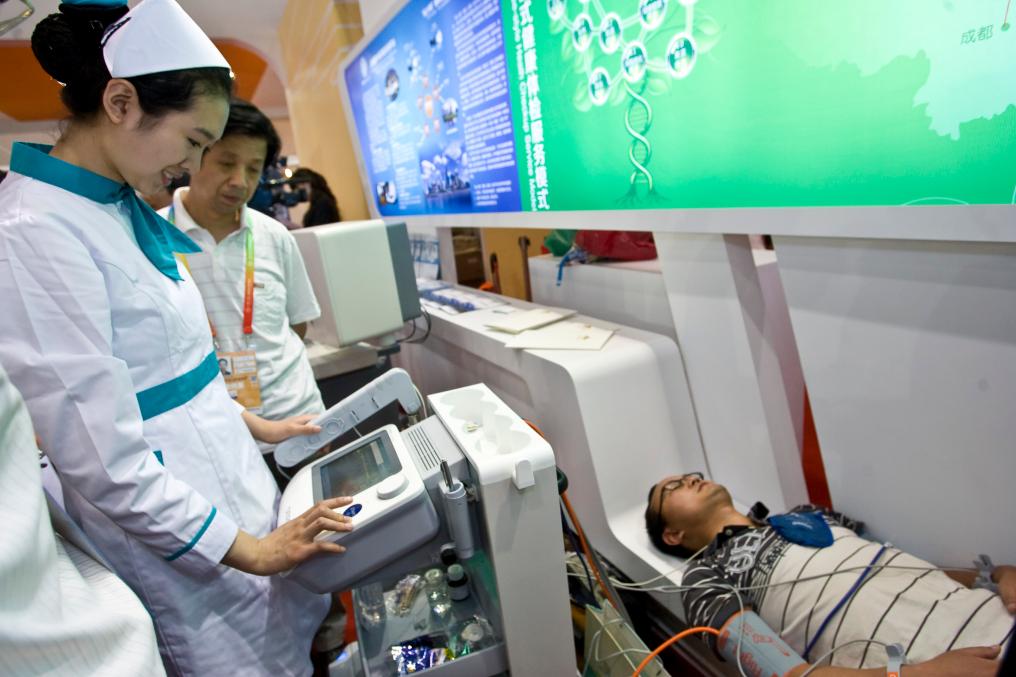 2012年5月28日,觀眾在首屆中國(北京)國際服務貿易交易會(簡稱“京交會”,后發展為中國國際服務貿易交易會,即“服貿會”)體驗全方位健康體檢。新華社發(趙冰 攝)