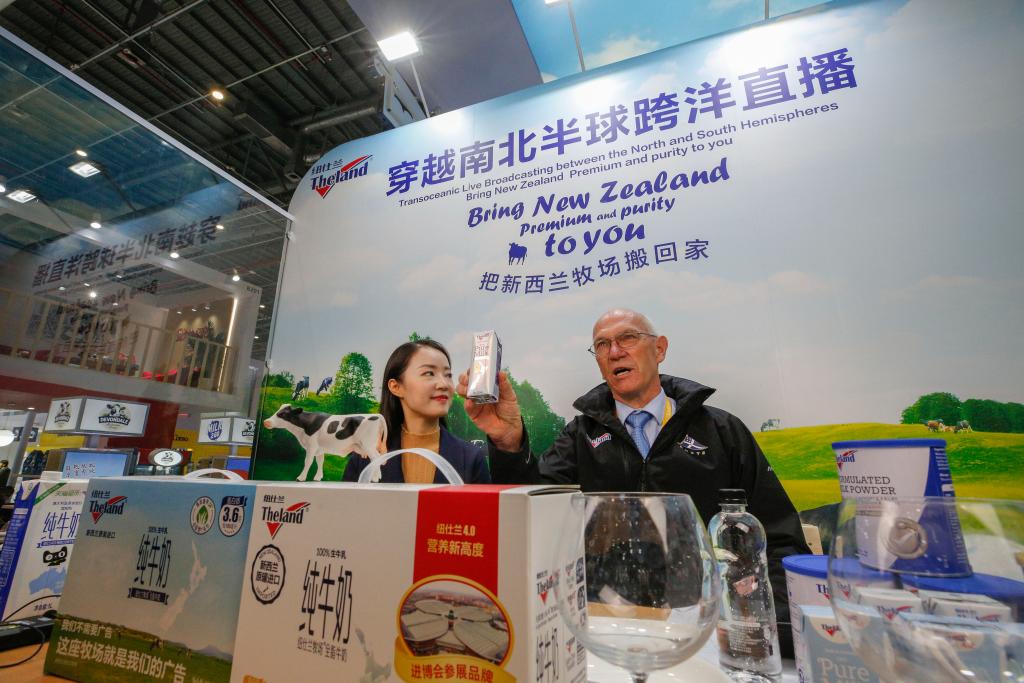 2020年11月7日,新西蘭紐仕蘭乳業全球研發總經理羅伊在第三屆進博會上直播帶貨。新華社記者 張玉薇 攝