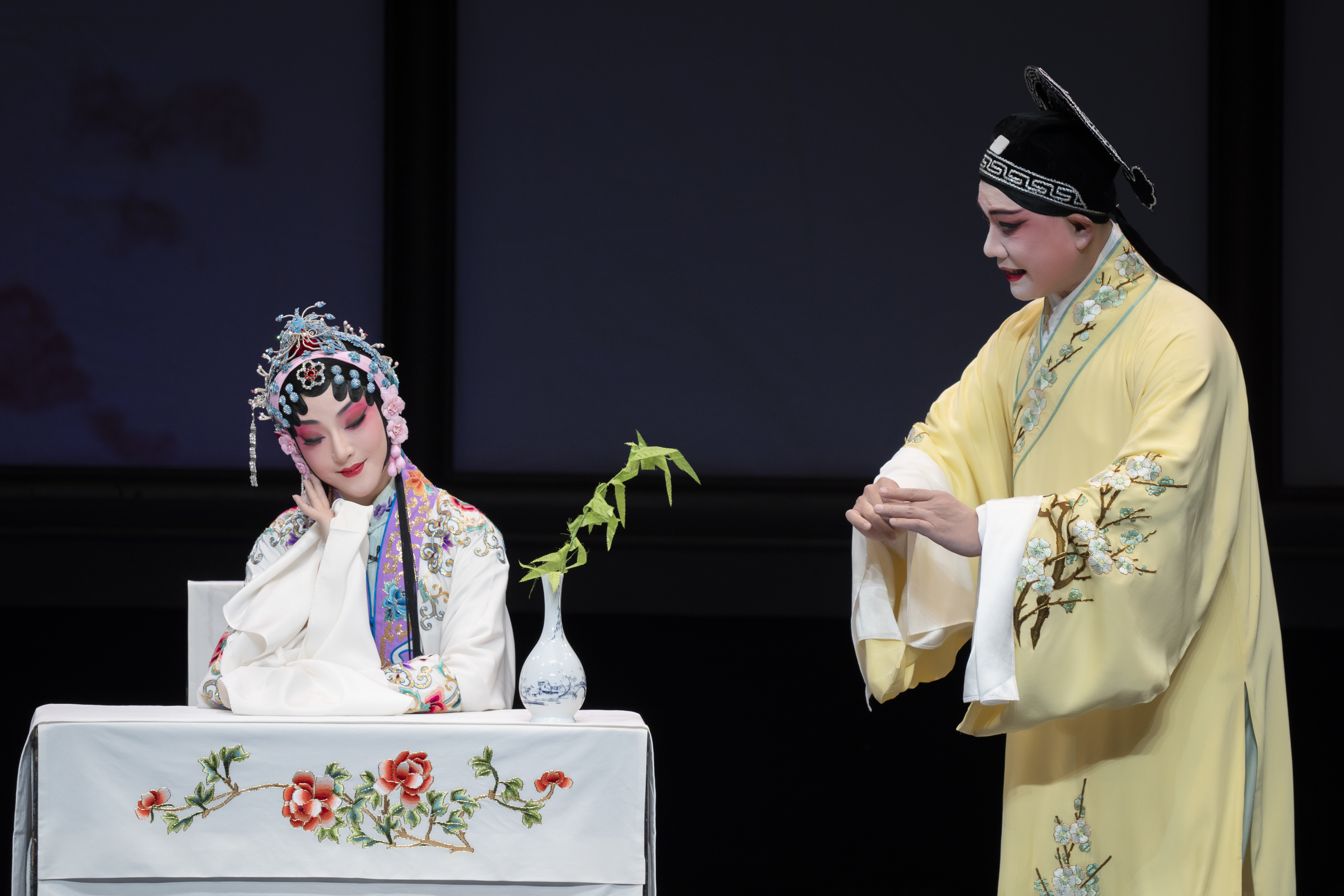 一桌一椅的極簡舞臺,為什么卻能在觀眾心中撐出一個(gè)內(nèi)涵極為豐富的文化空間?《牡丹亭》以其文辭典雅、語言秀麗著稱,被譽(yù)為“花中之后”,不僅是中國古典戲曲中的瑰寶,更是中國戲劇文學(xué)發(fā)展史上的重要里程碑。“我15年前第一次聽昆曲時(shí),覺得節(jié)奏很慢,難以適應(yīng)。如今再次觀看《牡丹亭》,盡管生活節(jié)奏加快了許多,我卻能更加從容地融入其中,深刻體驗(yàn)到中華傳統(tǒng)文化之美。”觀眾于女士感嘆,不止于戲文,《牡丹亭》的聲腔、表演、舞臺,每一個(gè)元素都承載著深厚的文化價(jià)值,讓人在中國式審美中共鳴于人物的精神追求。