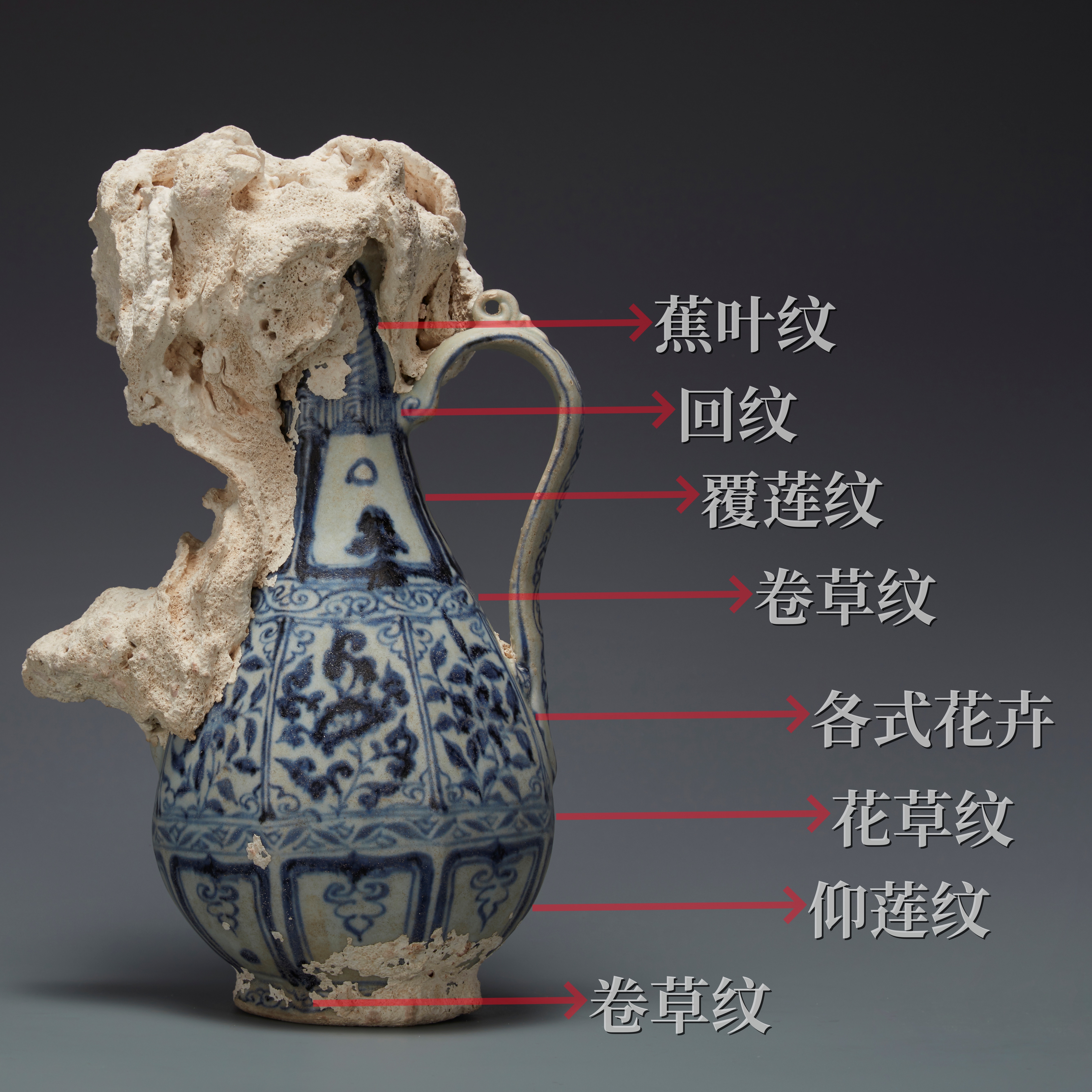 △元青花花卉紋八棱執壺,中國(海南)南海博物館館藏一級文物。
