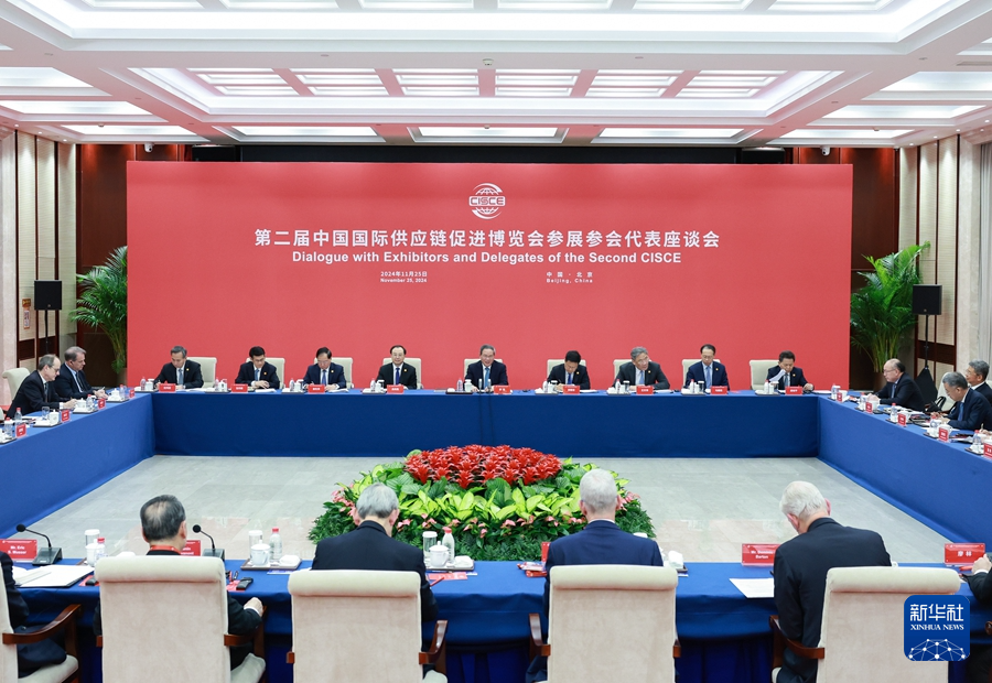 11月25日,國務院總理李強在北京同第二屆中國國際供應鏈促進博覽會參展參會企業代表座談。住友電工、蘋果公司、正大集團、力拓集團、康寧公司、中國工商銀行、寧德時代、聯想集團、TCL科技集團、百勝中國、美中貿易全國委員會等企業和機構負責人出席。