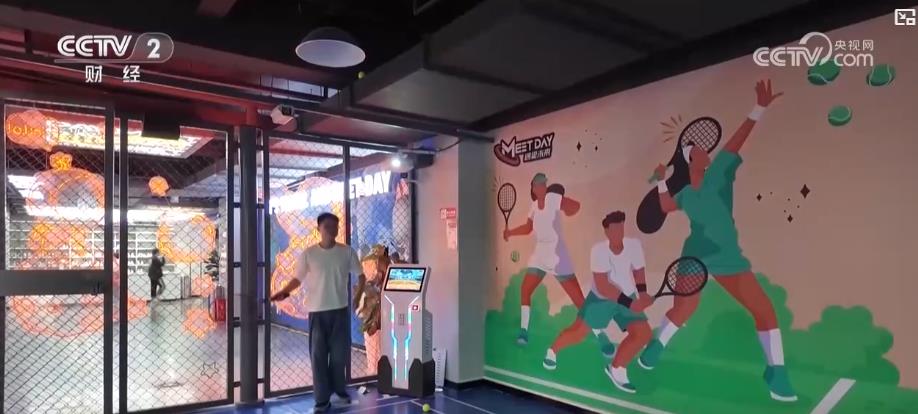 在四川成都的一家室內綜合運動館,除了有保齡球、射擊等傳統項目,還有一些科技感十足的新體驗。在眼前這塊僅20多平方米的場地,通過發球機和紅外感應技術,可以模擬真實的網球擊球路線,給消費者帶來了全新的體驗。