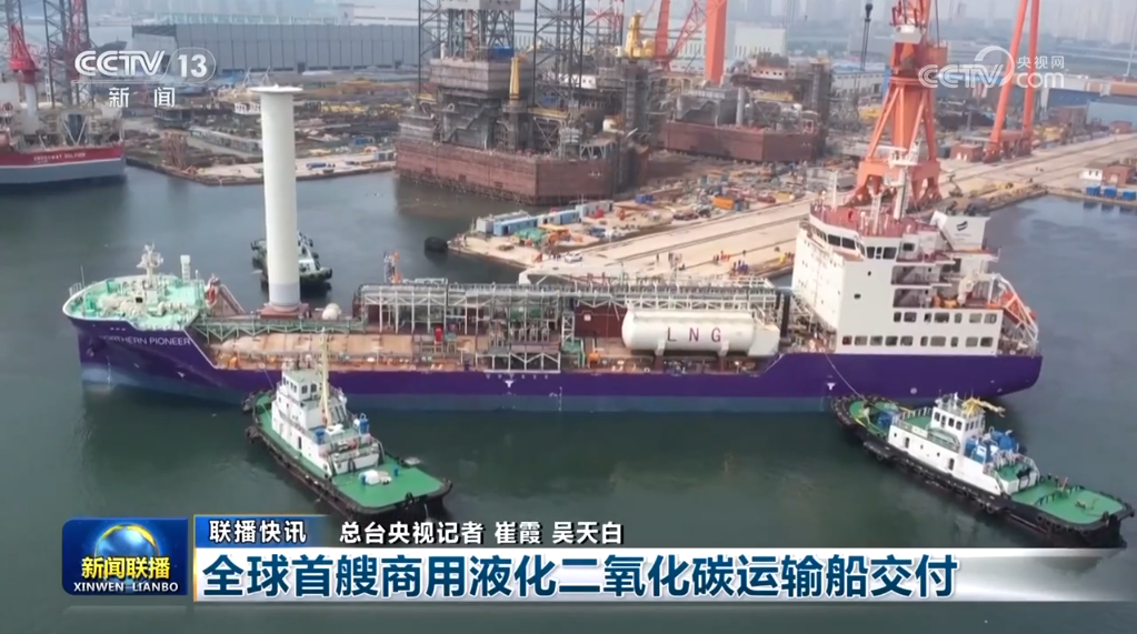 由中國船舶大連造船自主研發建造的全球首艘商用液化二氧化碳運輸船,近日正式交付國外用戶。該船一次可運輸7500立方米的液化二氧化碳。
