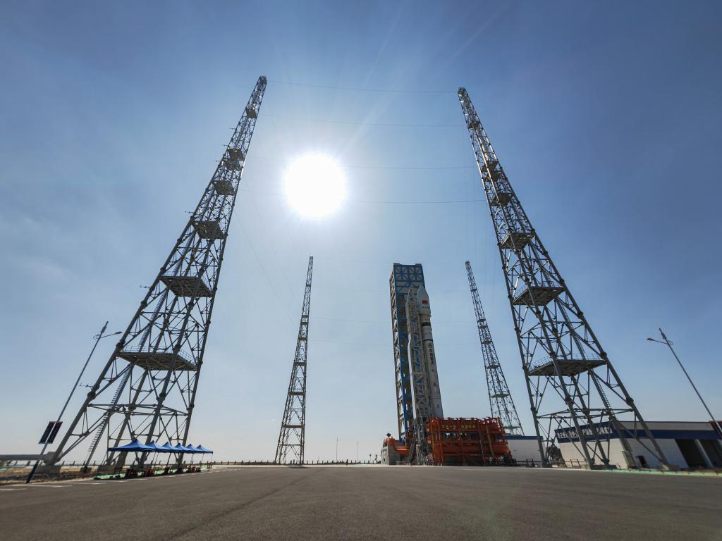 11月29日拍攝的海南商業航天發射場二號發射工位和等待發射的長征十二號火箭。新華社記者 蒲曉旭 攝