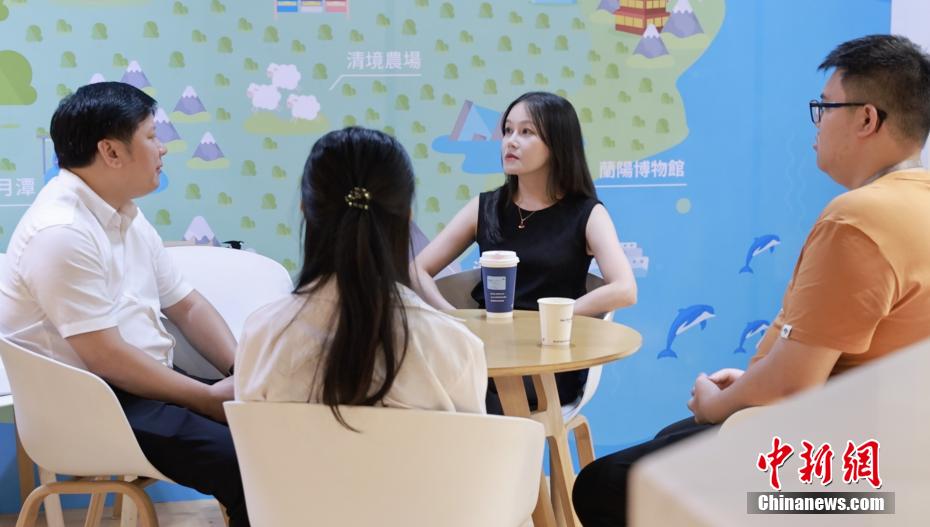 在臺灣大學生到廣州實習活動的開營儀式上當主持人,以自身經歷分享給臺灣各大高校的學弟學妹們,吳宥璇既是主持人,也是過來人。臺下的年輕學子看著這位學姐,身上有許多靚麗的標簽,“美國名校”“創業達人”“年輕有為”,每一個都令人向往,但故事的開頭,大家都不知道,這位只身闖大陸的學姐,卻被家人禁止來到大陸。圖為廣東廣州,吳宥璇在廣州市白云區匯龍海峽兩岸青年創業基地里和同事交流。