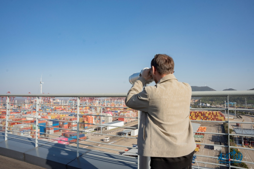 記者們站在觀景平臺(tái),通過(guò)望遠(yuǎn)鏡親眼見(jiàn)證了全球最繁忙集裝箱港口之一的現(xiàn)代化作業(yè),他們爭(zhēng)相與壯觀的碼頭場(chǎng)景合影留念。來(lái)自哈薩克斯坦《誠(chéng)實(shí)報(bào)》社會(huì)文化部主任納烏雷茲別克·薩爾沙耶夫在接受環(huán)球網(wǎng)記者采訪時(shí)說(shuō)道“寧波舟山港的運(yùn)作效率和智能化管理令人贊嘆,它無(wú)疑是全球物流行業(yè)的標(biāo)桿。”
