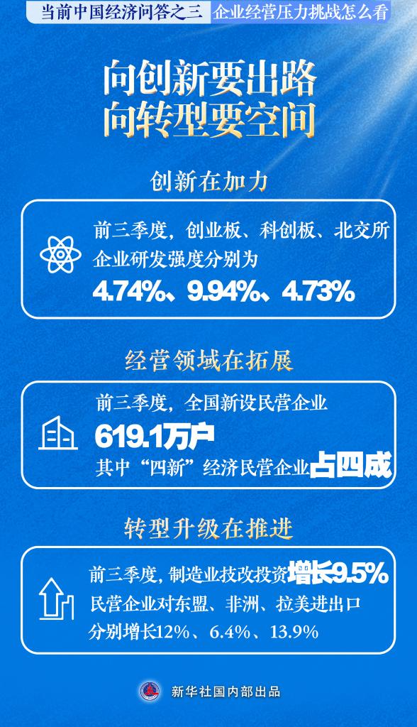 前三季度,全國新設民營企業619.1萬戶,其中“四新”經濟民營企業占四成,經營領域在拓展。