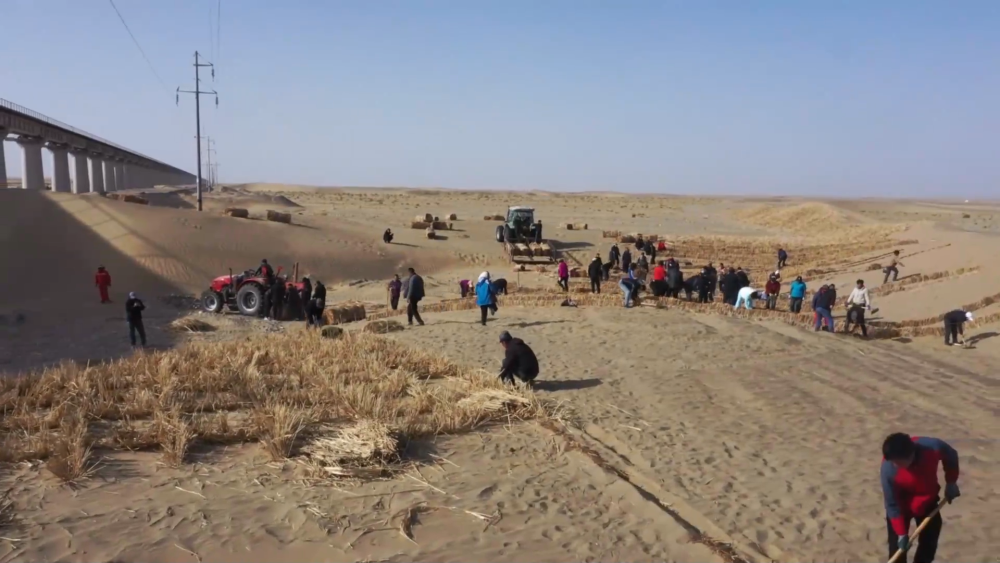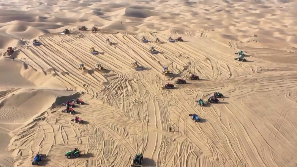 在發(fā)展沙產(chǎn)業(yè)的過程中,新疆和田地區(qū)民豐縣多措并舉深入推進“三北”工程攻堅戰(zhàn)、扎實推進塔克拉瑪干沙漠邊緣阻擊戰(zhàn)。12月5日,民豐縣后河壩沙漠邊緣,大型推土機來回穿梭、平整沙地。一大早,尼雅鎮(zhèn)甫甫克村村民麥麥提·麥提賽伊迪與愛人就來到自己承包的沙地,查看沙丘的平整情況。