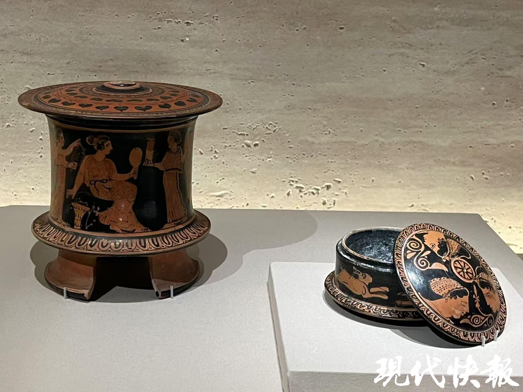 黑底紅畫的化妝盒、金鏈網頭飾、青銅勇士小雕像……在“美的多元——古希臘的藝術與生活”展覽中,觀眾仿佛穿越時空,置身于古希臘的世界。玫瑰、莎草等香料散發著獨特的氣息,引領人們探尋古希臘人的生活風貌。在這里,東西方審美差異與共通的對美追求相互交融,讓觀眾對美的理解更加深刻和多元。