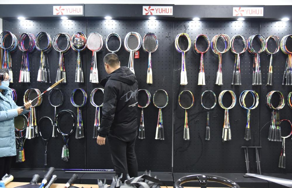 敦寨鎮的羽毛球,還衍生出了包括羽毛球拍等產品和包裝在內的眾多下游企業。其中一家公司生產的碳纖維羽毛球拍,每月可達3萬支,大部分產品出口到東南亞等海外市場。