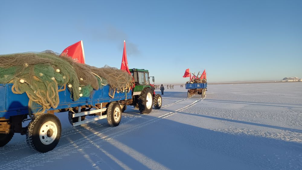 遼闊的達里湖銀裝素裹,在零下二十攝氏度左右的嚴寒中,漁業工人們開始了一系列精細而有序的冬捕作業準備工作。