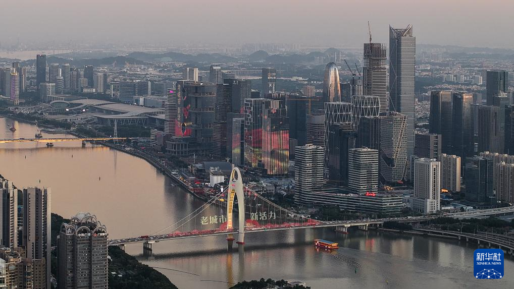 廣州市區沐浴在夕陽余暉之中(2024年11月29日攝,無人機照片)。