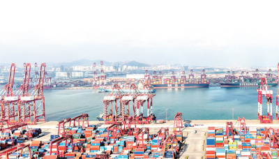 山東青島,青島港外貿集裝箱碼頭一派繁忙景象。 俞方平攝
