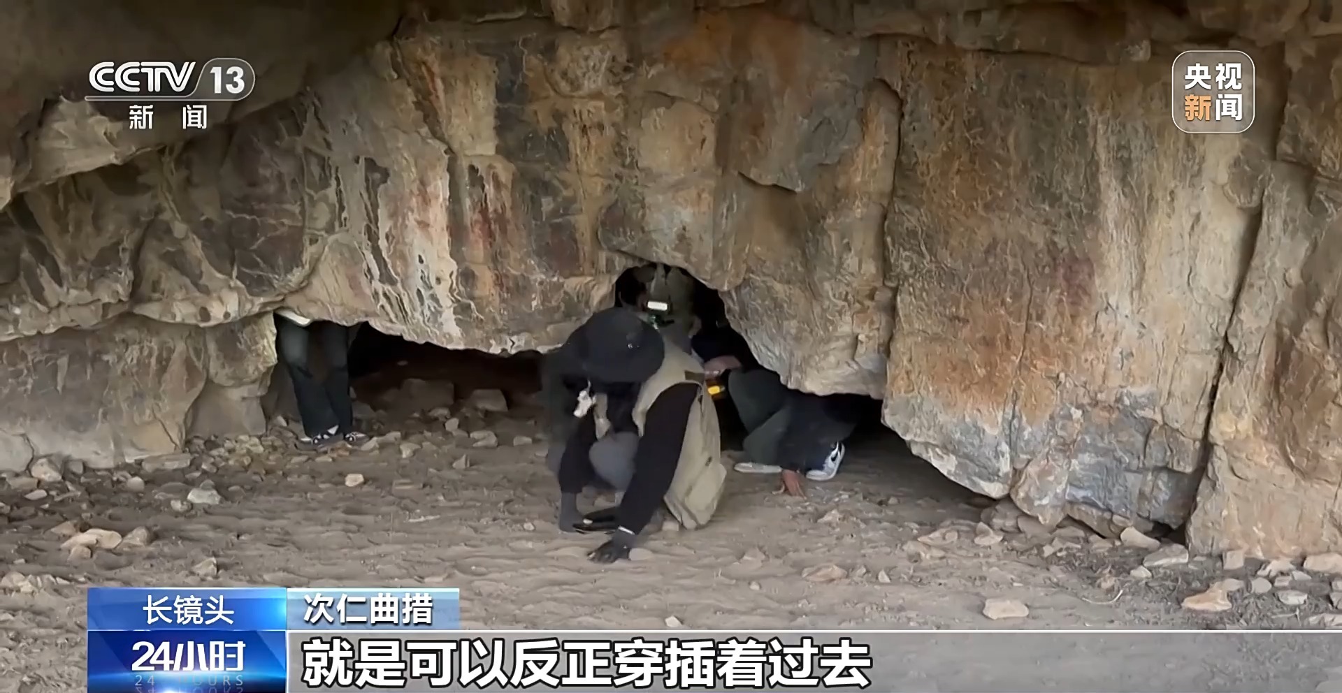 次仁曲措:當地的向導說洞里面還有幾個巖畫,我們就趴著進去了。洞里面還有幾個洞口,可以穿插著過去,感覺像拆盲盒一樣,非常好奇,想迫不及待地知道洞口有哪個巖畫,這些人像在跳舞或者在舉行某種儀式。