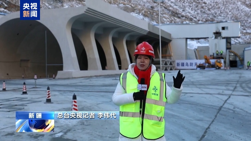總臺(tái)央視記者 李偉代:這里是海拔2800多米的天山勝利隧道施工現(xiàn)場(chǎng)。現(xiàn)在正是中午,一天中氣溫最高的時(shí)候,但氣溫也只有零下22攝氏度。我身后就是天山勝利隧道在天山北麓的進(jìn)口端,隧道就是從這里穿越天山,一直打過去到南麓。大家可以看到三個(gè)洞口依次排列,未來從烏魯木齊方向開車去庫爾勒,從這個(gè)洞口20分鐘就可以穿過隧道。如果從庫爾勒北上來烏魯木齊,車輛就從這個(gè)隧道口出來。中間的中導(dǎo)洞通車后將用于應(yīng)急救援等服務(wù)。