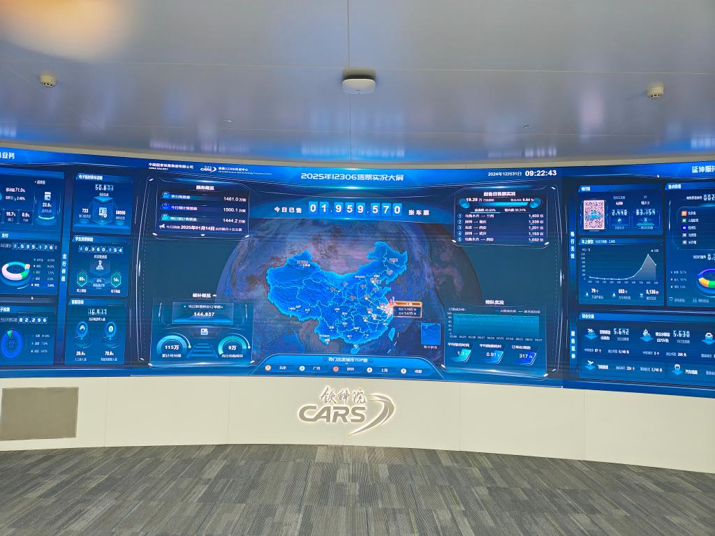 春運火車票發售首日,鐵路12306監控大屏上,已售車票數字不斷刷新。截至9點30分,鐵路12306共售出春運火車票19.50萬張,占當日售票總數的9.46%。其中,烏魯木齊—蘭州、深圳—重慶、北京—西安三個區段春運火車票最火熱,售票分別達到1420張、1355張和1210張。
