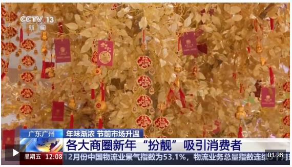 在廣州各大商圈,歡喜過大年的喜慶裝扮陸續(xù)煥新,有的擺上紅紅火火的“金錢樹”,有的在商場內(nèi)設(shè)立各種展覽,增加消費(fèi)者購物樂趣和文化體驗(yàn)。
