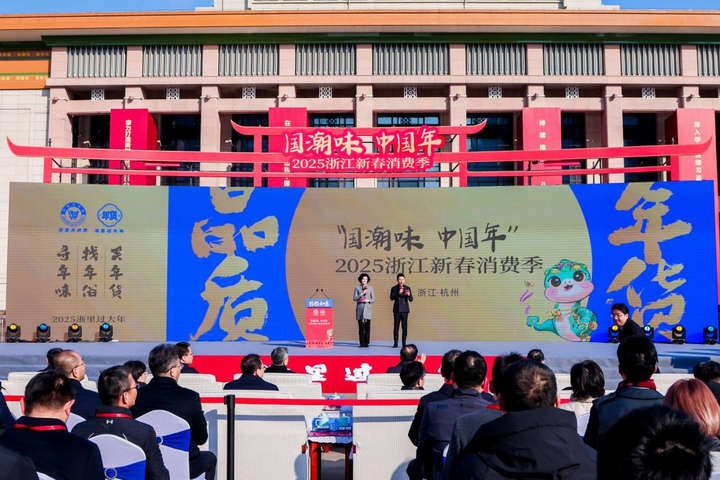 ■9日上午,2025浙江新春消費季啟動儀式在杭州武林廣場舉行。十一個地市分會場活動,上百個重點商圈、步行街聯動舉辦特色年貨節,合力營造年味濃、活力強、人氣旺的消費氛圍,激發歲末年初消費潛能。