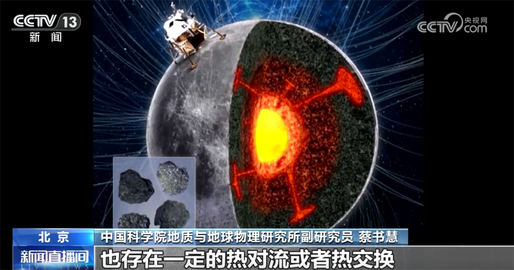 蔡書慧稱:“發現距今20億年的時候,也就是月球演化的偏中后期,它還存在一個非常弱的磁場,強度是2—4個微特,不到現今地球磁場的10%。這說明在距今20億年的時候,月球的內部可能還是有一定的活力的,也存在一定的熱對流或者熱交換。”