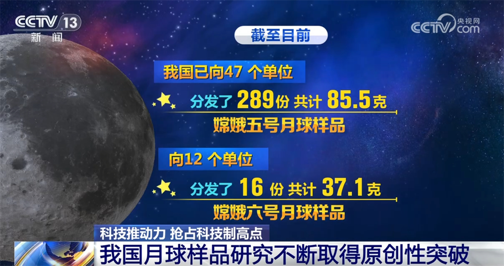 截至目前,我國已向47個單位分發了289份共計85.5克嫦娥五號月球樣品,向12個單位分發了16份共計37.1克嫦娥六號月球樣品。利用最新分發的嫦娥六號月球樣品,中國科學院國家天文臺和廣州地球化學研究所還在月背樣品特征、月球演化活動等領域取得了一批重要成果。2025年,更多月壤研究項目正在陸續部署和開展,各項研究加速向前,有望幫助我們認識一個“全新”的月球。