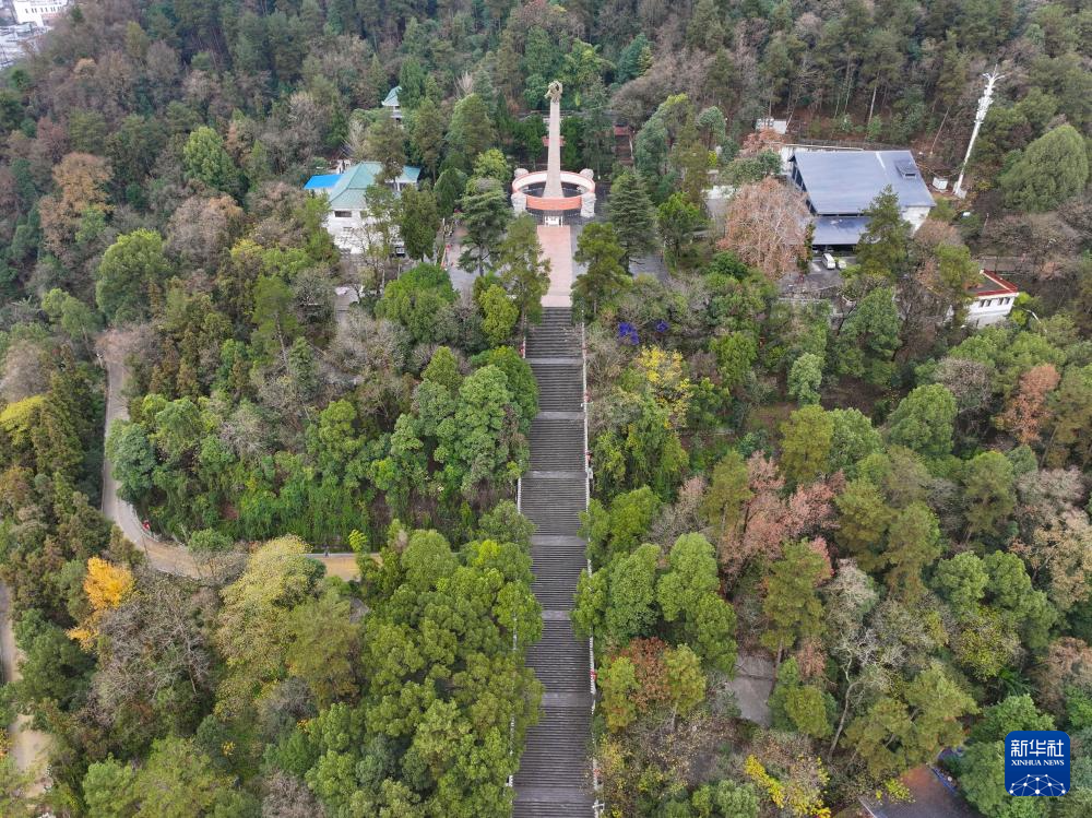 這是遵義市的紅軍山烈士陵園(2025年1月9日攝,無人機照片)。新華社記者 劉續 攝