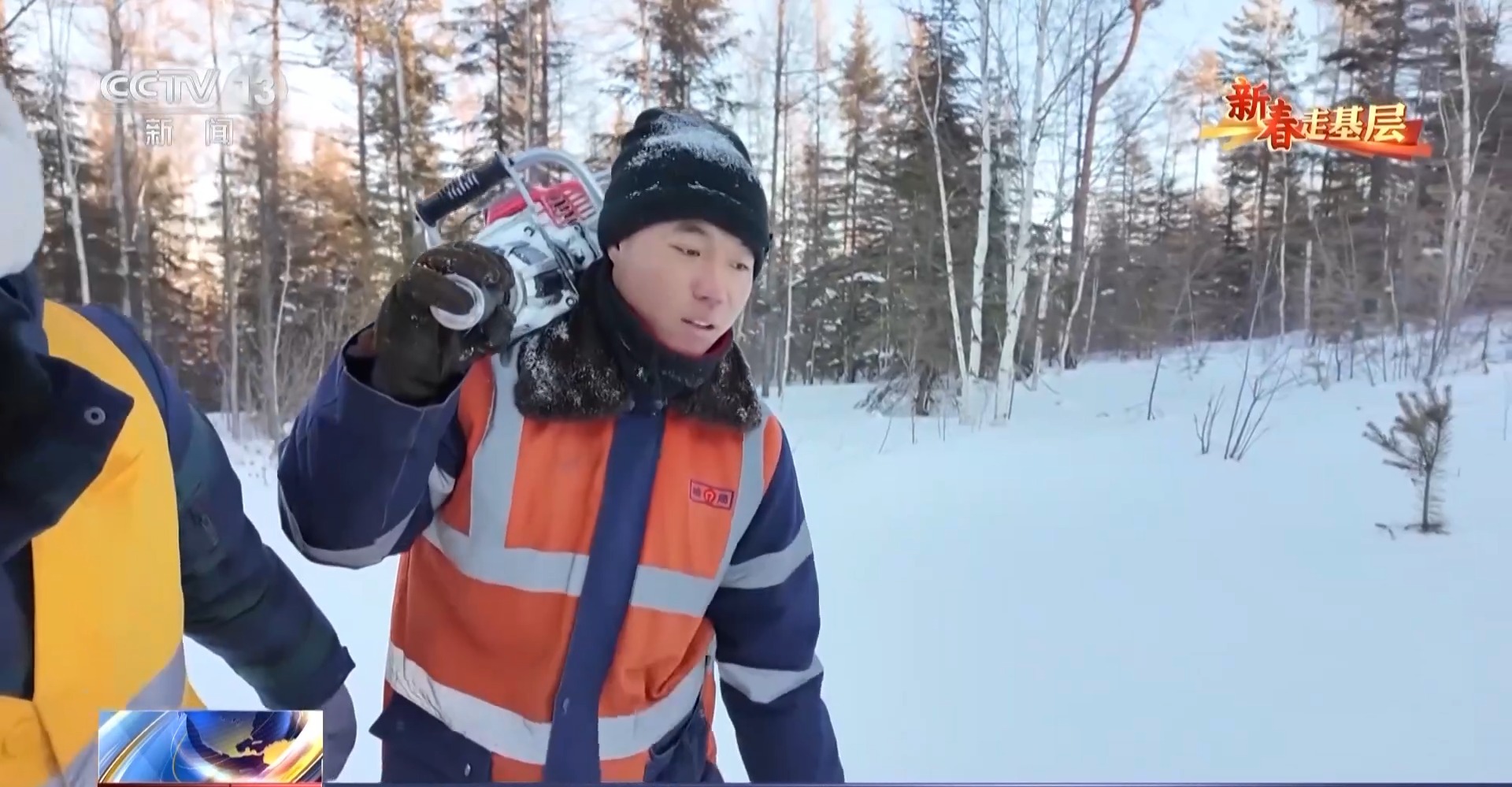 清晨7時多,氣溫在零下30多度,記者跟隨維修工隊的小伙子們前往作業現場。 剛下過一場大雪,森林里的積雪已經沒過膝蓋。