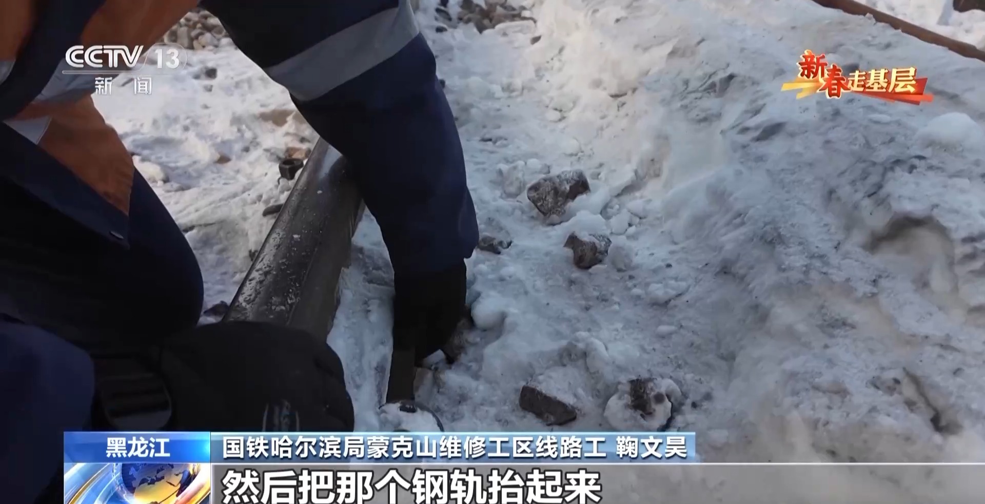 國鐵哈爾濱局蒙克山維修工區線路工 鞠文昊:我們通過這種墊板的方式,把鋼軌抬起來,保證這個軌面、鋼軌平齊平直。