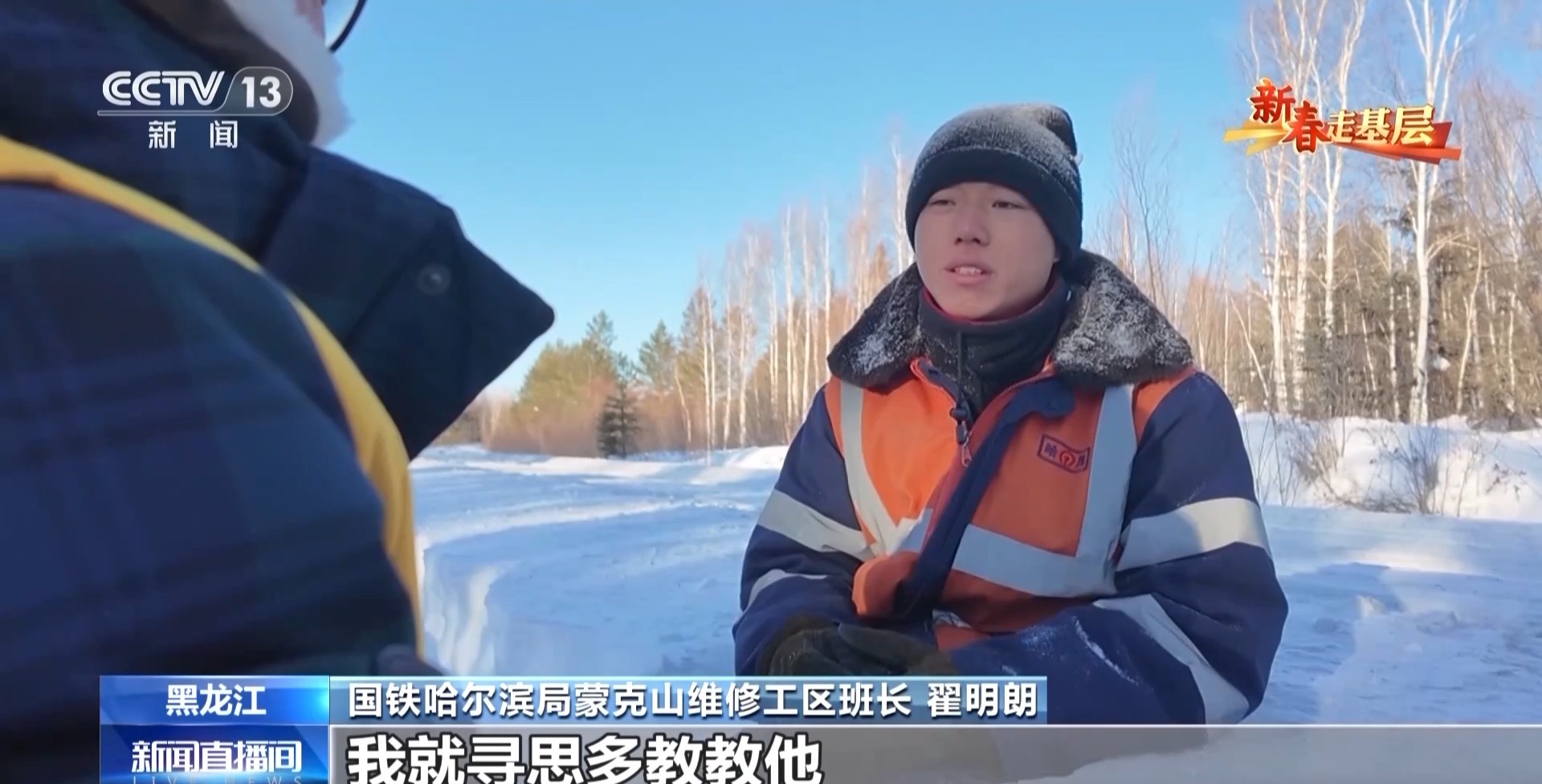 國鐵哈爾濱局蒙克山維修工區班長 翟明朗:就覺得他從大西北來到大東北,遠離親人,也挺心疼他的,我就尋思多教教他,讓他少走一些彎路。