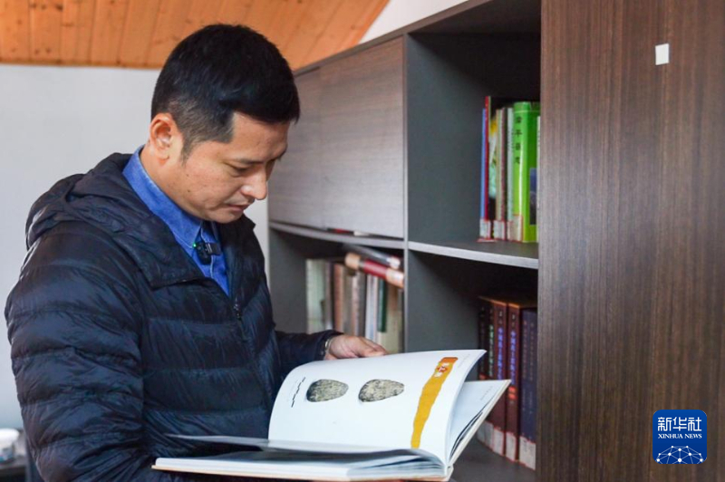 許桂榮在殼丘頭遺址博物館收集文物資料。新華網 肖和勇 攝