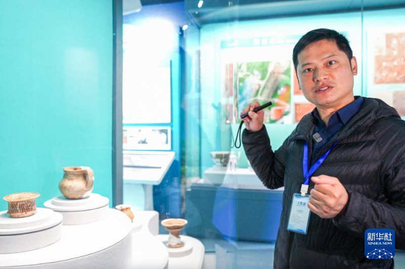 許桂榮在殼丘頭遺址博物館,向參觀者介紹文物。新華網 肖和勇 攝