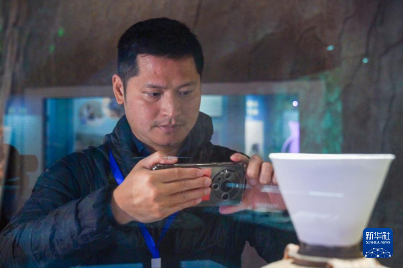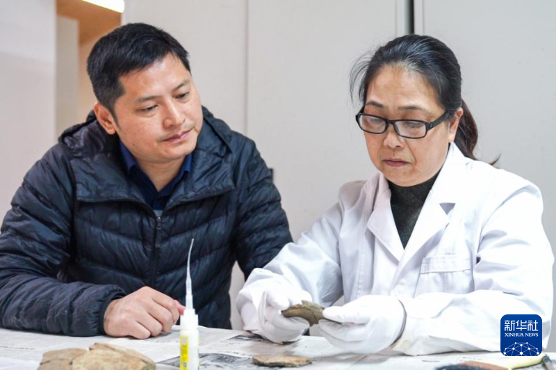 許桂榮在文物修復室了解文物修復過程。新華網 肖和勇 攝