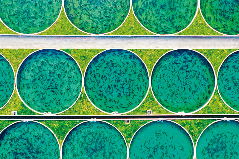 天全水產現代農業園,上百個依河而建的圓形流水魚池中,鱘魚正在游曳。圖片由天全縣委宣傳部提供。