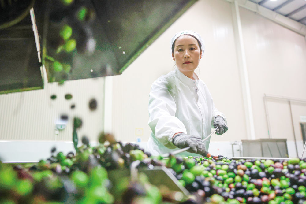 在中國西北的甘肅隴南,上百萬畝油橄欖已采摘進入榨油生產線,當地人春節拜年帶上一盒新榨橄欖油,健康又體面;