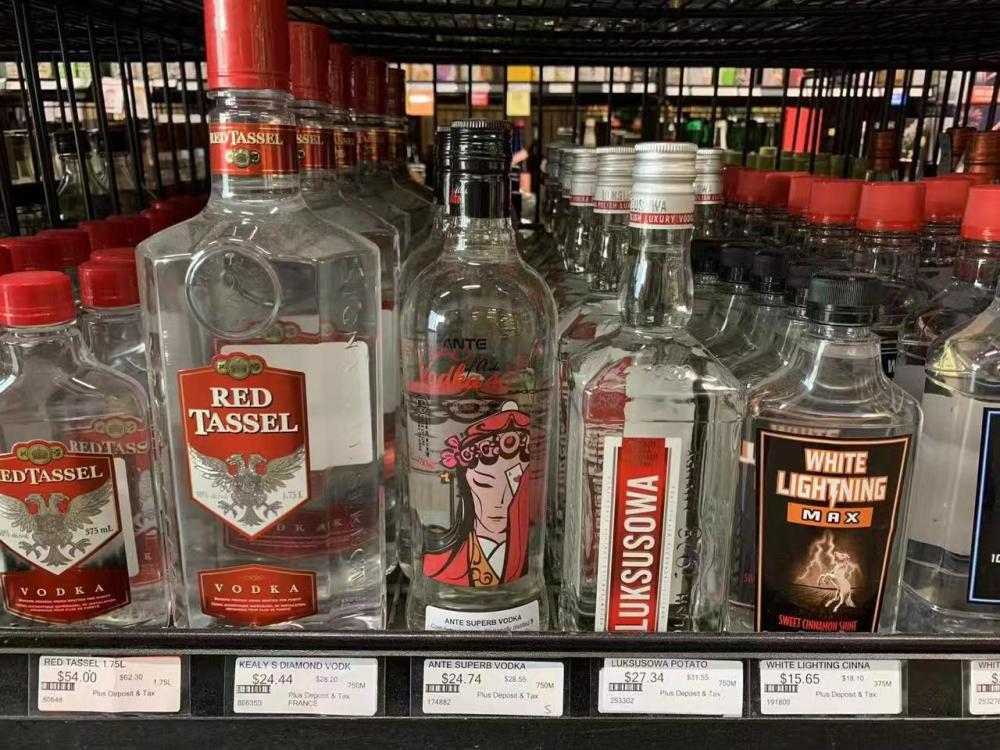 加拿大超市貨架上的中國產國粹臉譜系列伏特加。受訪者供圖