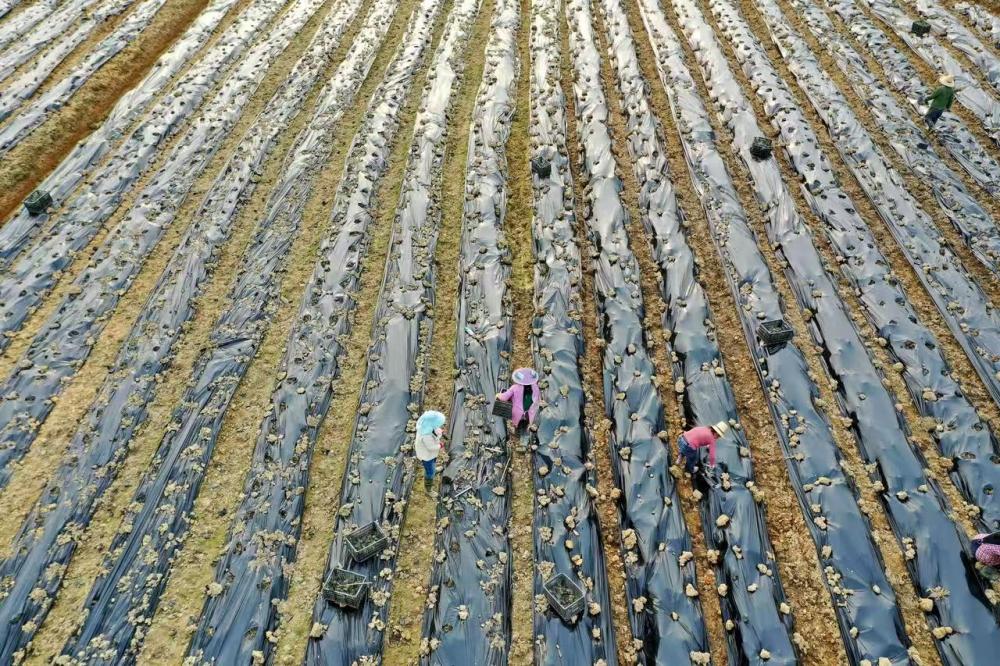 在江西省撫州市金溪縣合市鎮車門村芳樟基地,當地農民種植芳樟幼苗。鄧興東攝