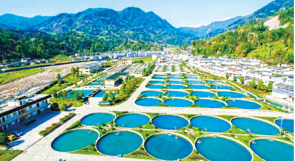 在四川省天全水產現代農業園內,上百個圓形流水魚池依河而建。圖片由天全縣委宣傳部提供。