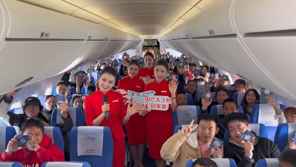 據了解,春運首日,中國南方航空C919國產大飛機執行廣州往返杭州、上海虹橋、海口、成都天府4條航線的10個航班,承運旅客1200余人次。