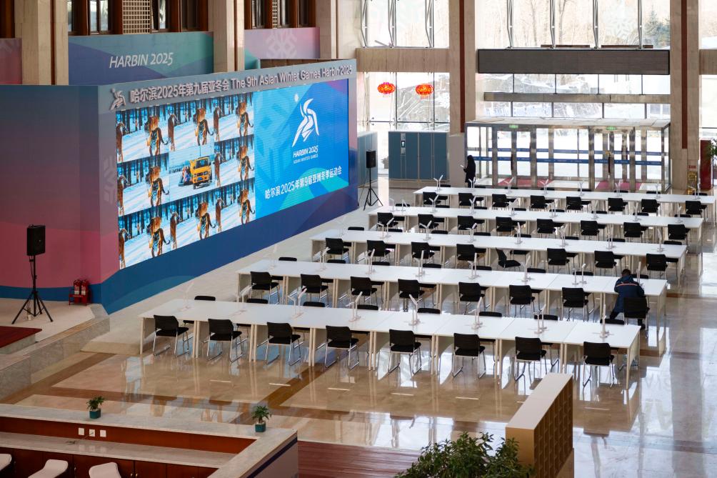 這是1月16日拍攝的2025年第九屆亞冬會雪上賽區亞布力山地媒體中心內景。新華社記者 謝劍飛 攝