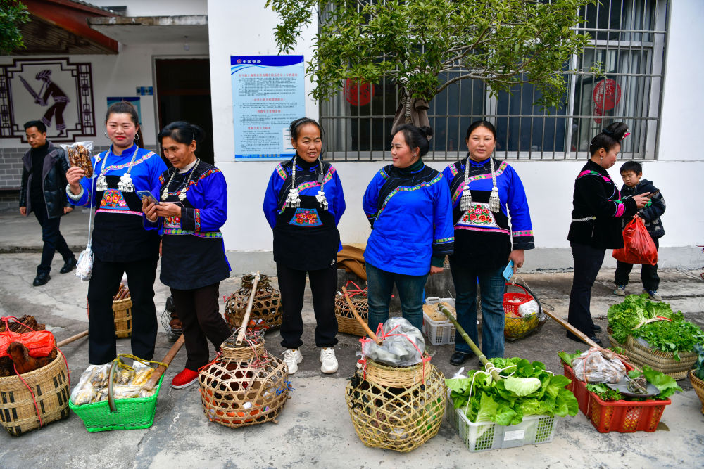 1月18日,沿途村民在5640次列車“鄉(xiāng)村集市”車廂售賣農(nóng)產(chǎn)品。新華社記者 楊文斌 攝